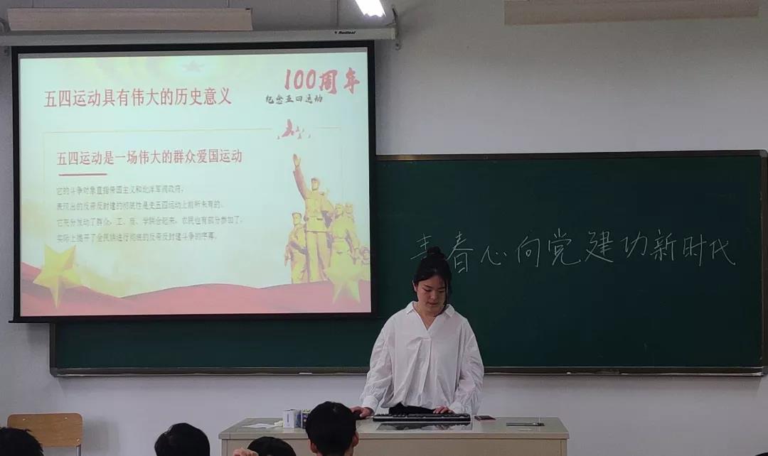 为纪念五四运动,进一步弘扬五四精神,让同学们深刻感悟五四精神所蕴含的意义,16应用统计学(金融统计)一团支部于4月18日中午12:00在教学楼9-214举行了以“青春心向党建功新时代-纪念五四运动100周年”为主题的团日活动。